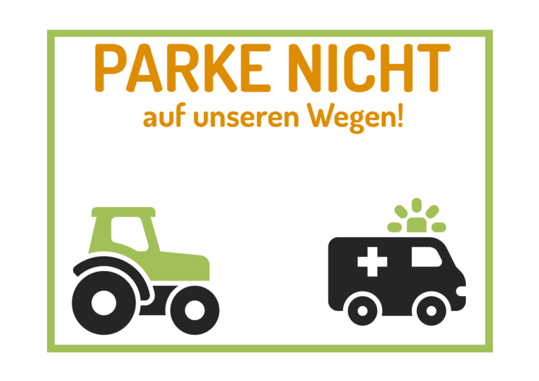 • Parken: Informiere dich, wo du parken darfst. Reise nach Möglichkeit mit anderen an, damit mehr Platz bleibt, versperre keine Wege und halte Zufahrten für Traktoren frei. Nimm ggf. ein paar mehr Zustiegsmeter in Kauf, um mit deinem Auto niemanden zu stören.